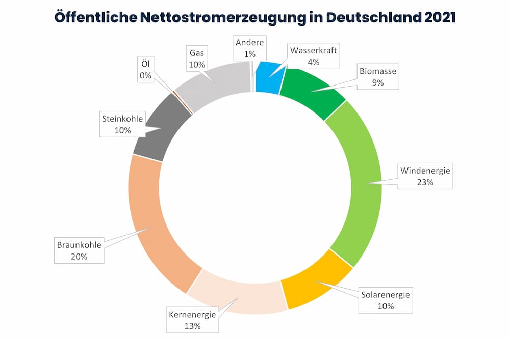 Solarenergie deckt bereits 10 Prozent der deutschen Stromversorgung, Tendenz steigend. Siehe dazu die Statitik von 2021: